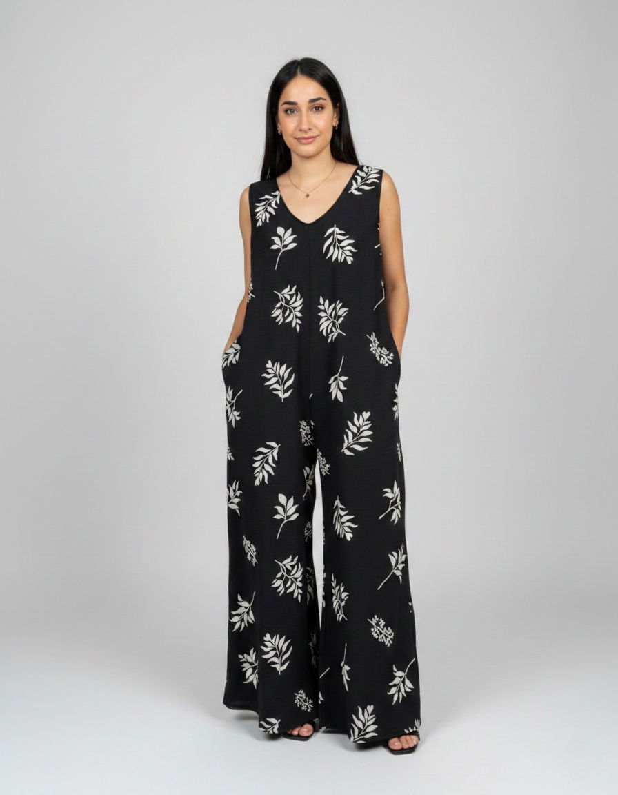 Un infaltable para esta temporada. Nuestro monopalazo combina comodidad, frescura y estilo en una sola prenda. Su palazo amplio crea un hermoso efecto vestido al caminar, estilizando la silueta y aportando movimiento.
