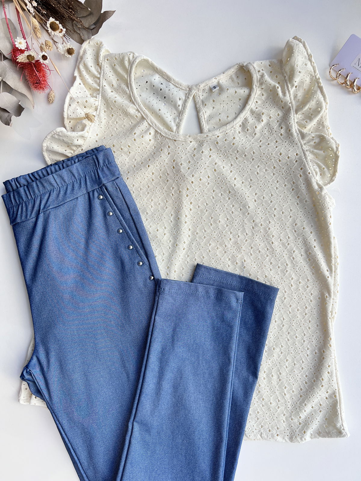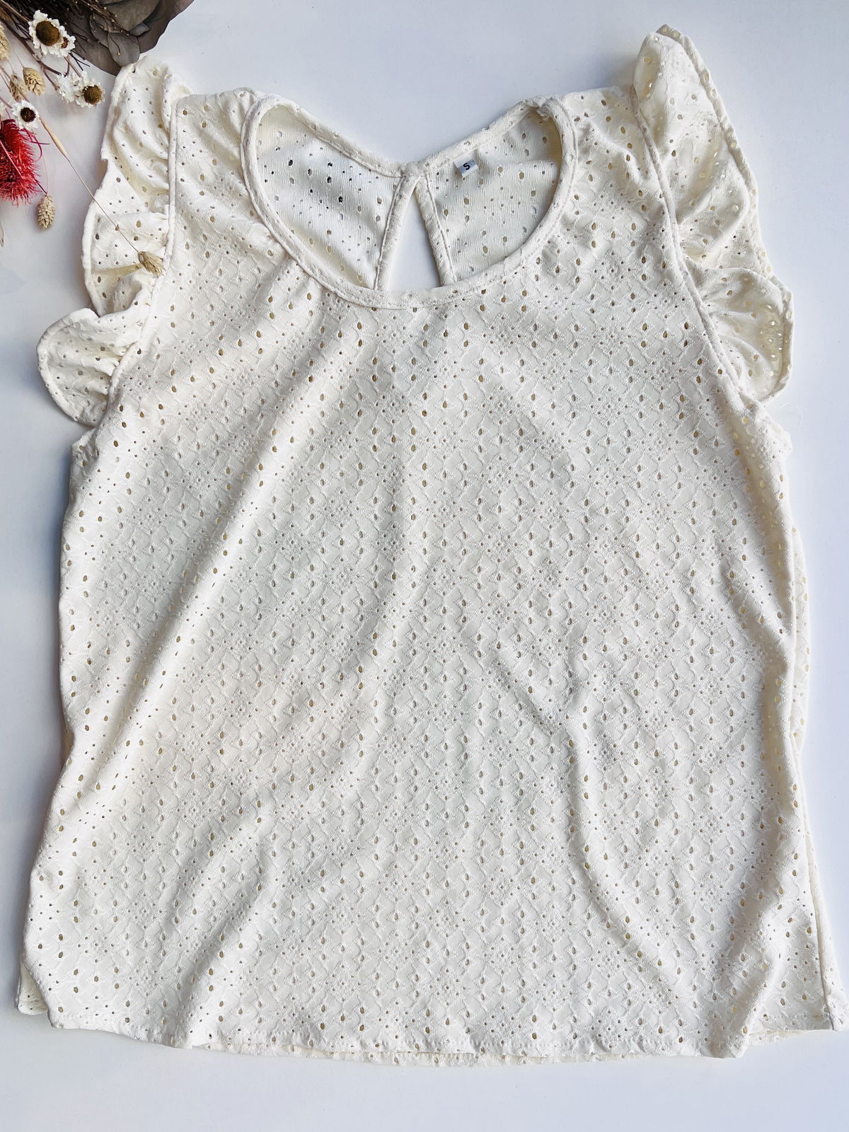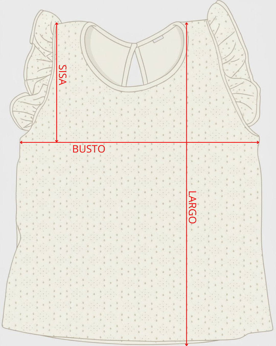 Musculosa con diseño de gota en broderie, confeccionada en punto con texturas de puntos grandes y chicos. Su corte fresco y femenino la convierte en una prenda ideal para los días cálidos, aportando un toque delicado sin perder comodidad.