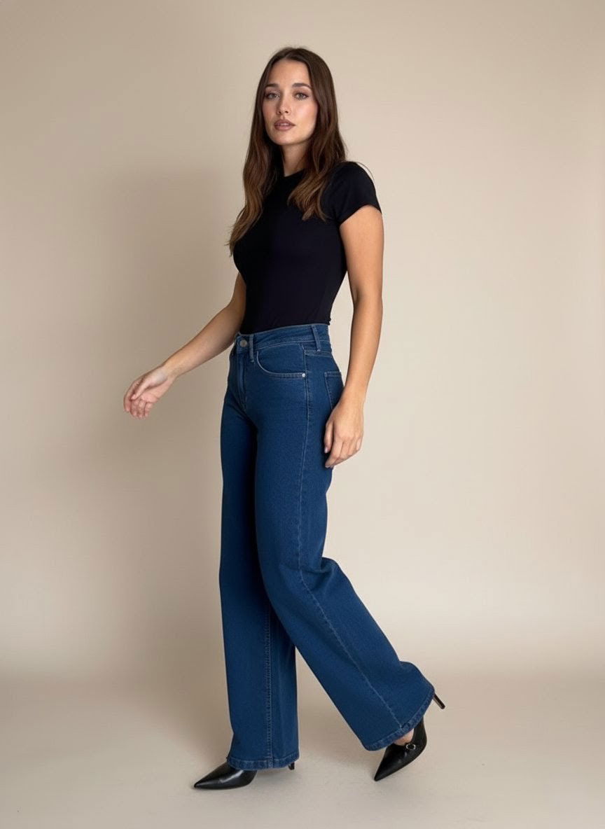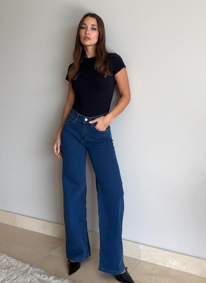 Jean Wide Leg azul clasic tiro alto – moderno y súper cómodo.
