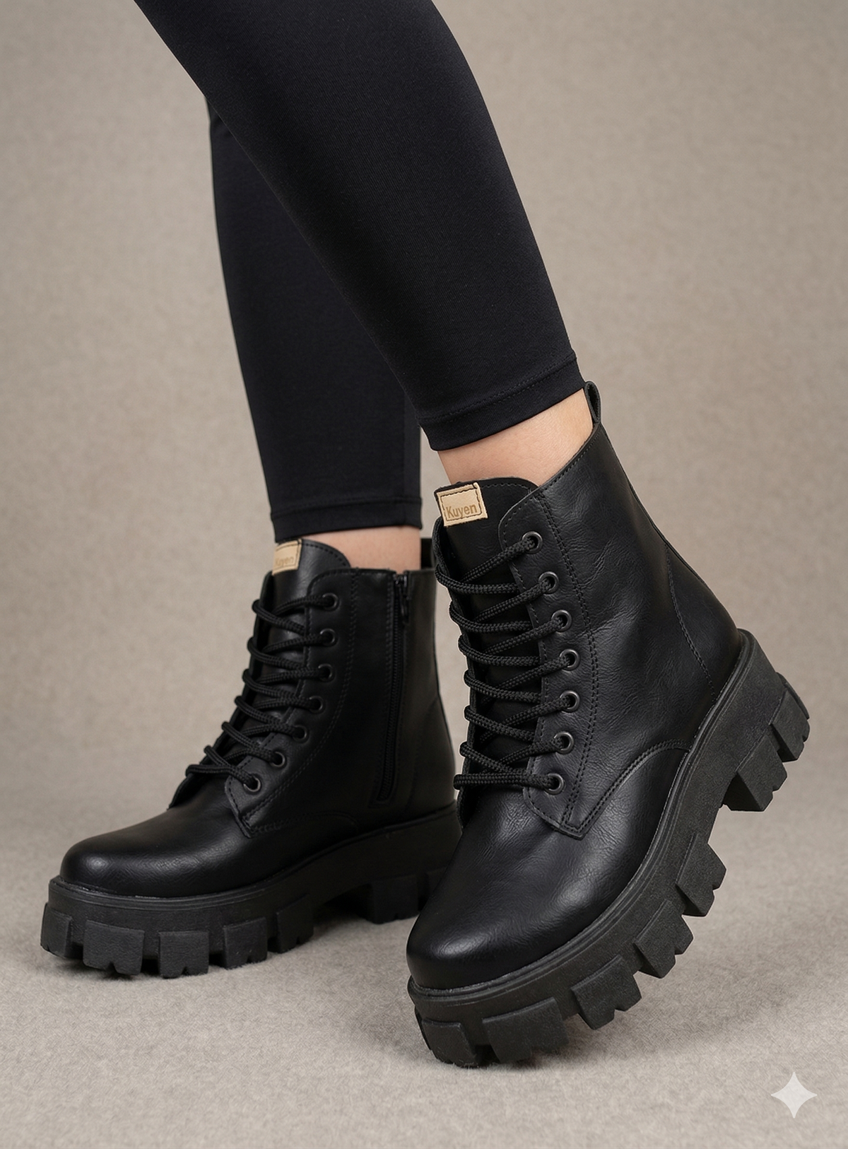 Borcego urbano confeccionado en cuero PU de excelente calidad, resistente y fácil de mantener. Su diseño combina carácter y funcionalidad: suela ancha que aporta presencia y estabilidad, y cierre lateral que facilita el calce diario.